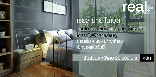 "เรียล บาย โนเบิล" คอนโดแต่งครบ ผ่อนเริ่มเพียง 4,900 บาท/เดือน