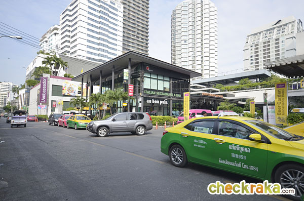 และโรงแรมเลยทีเดียว และที่เห็นมีรถออกมาข้างๆ ร้านโอบองแปง คือทางเข้า Ambassador Hotel Bangkok ค่ะ