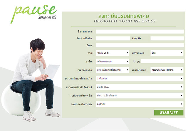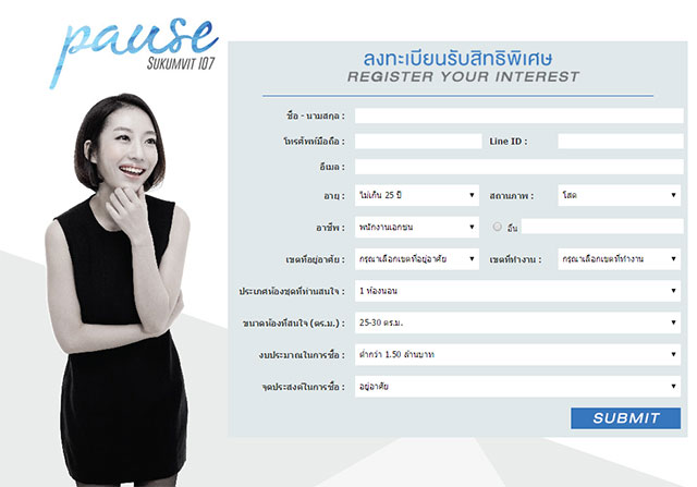 สำหรับผู้ที่สนใจโครงการ Pause Sukhumvit 107 แวะเข้าชมห้องตัวอย่างได้แล้ว ณ สำนักงานขายโครงการค่ะ และสามารถลงทะเบียนเพื่อรับข้อมูลข่าวสารและสิทธิพิเศษได้ตามลิงก์ด้านล่างนี้