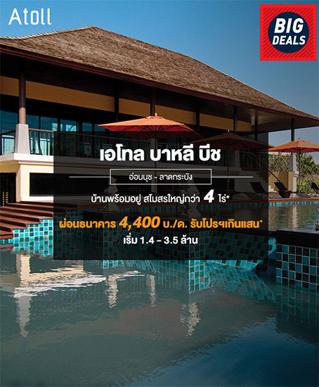 เอโทล บาหลี บีช อ่อนนุช-ลาดกระบัง เต็มเปี่ยมไปด้วยเอกลักษณ์ของอารยธรรมในแบบบาหลี นับแต่เสาซุ้มทางเข้าหลักที่ดีไซน์โดยได้แรงบันดาลใจจากลวดลาย ศิลปะของเทวาลัย ตลอดไปจนถึงหน้าต่าง ผนังตกแต่ง ทางเดินไม้ หรือเฉลียงนั่งเล่นของตัวบ้าน ต่างล้วนให้อารมณ์เฉกเช่นคุณใช้ชีวิตเหนือระดับ ณ รีสอร์ทหรู บนเกาะบาหลี ผ่อนธนาคารเพียง 4,400 บาท/เดือน รับโปรฯ เกินแสน* เริ่ม 1.4 - 3.5 ล้าน