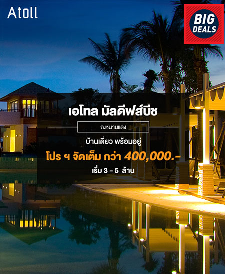 เอโทล มัลดีฟส์บีช ถ.หนามแดง บ้านเดี่ยว พร้อมอยู่ พบโปรฯ จัดเต็มกว่า 400,000 บาท เริ่ม 3-5 ล้าน