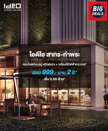 ไอดีโอ สาทร-ท่าพระ คอนโดติดรถไฟฟ้า 3 สถานี ตอบทุก mode การใช้ชีวิตอย่างเต็มที่ของคนเมือง Live / Work / Play สู่ศักยภาพของการใช้ชีวิตอย่างไม่มีที่สิ้นสุด ฟรีเฟอร์ฯ + เครื่องใช้ไฟฟ้าครบเซ็ต* ผ่อน 999 บาท นาน 2 ปี* เริ่ม 2.69 ล้าน