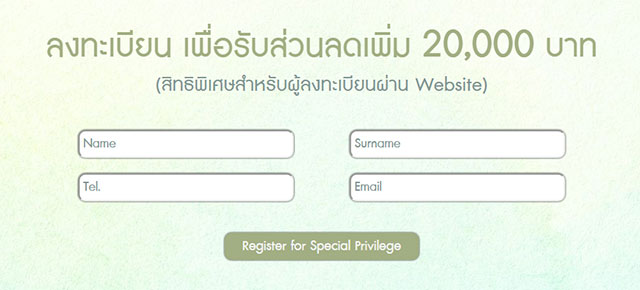 สำหรับผู้ที่สนใจสามารถลงทะเบียนเพื่อรับส่วนลดเพิ่ม 20,000 บาท ได้ตามลิงก์ด้านล่างนี้ค่ะ
