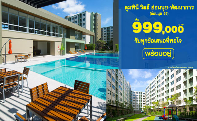 ลุมพินี วิลล์ อ่อนนุช-พัฒนาการ (อ่อนนุช 55) จัดโปรโมชั่นราคาพิเศษ เริ่ม 999,000 บาท