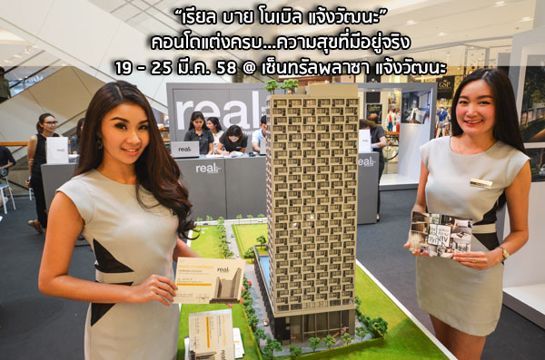 "เรียล บาย โนเบิล แจ้งวัฒนะ (Real by Noble - Chaengwattana)" คอนโดแต่งครบพร้อมอยู่ ราคาเริ่มต้น 2.2 ล้านบาท จองวันนี้รับส่วนลดสูงสุด 300,000 บาท และรับบัตรกำนัลเซ็นทรัล มูลค่า 20,000 บาท สนใจเข้าชมบูธโครงการหรือสอบถามรายละเอียดเพิ่มเติมได้ที่ ชั้น 1 เซ็นทรัลพลาซา แจ้งวัฒนะ วันที่ 19-25 มีนาคม 2558 นี้เท่านั้น !