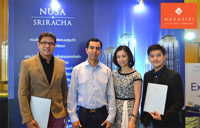 ณุศา ศรีราชา (Nusa Sriracha) ซึ่งได้มีการนำเสนอห้องชุดในอาคารซี (อาคารC) และอาคารดี (อาคารD) จำนวน 500 กว่ายูนิต ในราคาเริ่มต้น 3.2 ล้านบาท/ยูนิต ล่าสุดสามารถปิดการขายอาคารซี (อาคารC) ได้ทั้งหมด รวมมูลค่ายอดขายกว่า 2,081 ล้านบาท และจะทำการเปิดขายห้องชุดใน อาคารดี (อาคารD) ให้กับผู้ที่สนใจทั่วไปอีกครั้งในเดือนพฤษภาคม 2558 นี้ ซึ่งภายในงานมีกูรูด้านการลงทุนชื่อดัง คุณปิยพันธ์ วงศ์ยะรา (ที่ 1 จากซ้าย) และ คุณโอภาส ถิรปัญญาเลิศ (ที่ 1 จากขวา) ให้เกียรติเข้าร่วมงาน เมื่อเร็วๆนี้