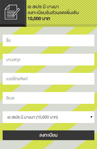 ติดเมกะบางนา สำหรับผู้ที่สนใจโครงการ เอ สเปซ มี บางนา (a space Me Bangna) สามารถลงทะเบียนเพื่อรับข้อมูลข่าวสารและสิทธิพิเศษได้ตามลิงก์ด้านล่างนี้ *เงื่อนไขเป็นไปตามที่บริษัทฯ กำหนด