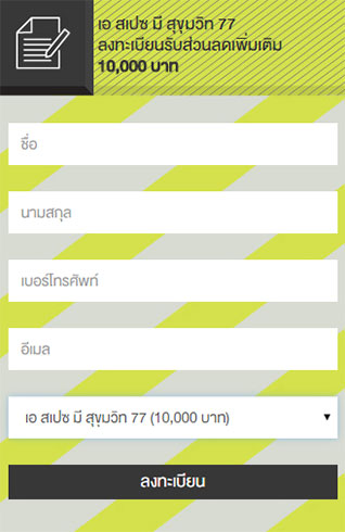 สำหรับผู้ที่สนใจโครงการ เอ สเปซ มี สุขุมวิท 77 (a space Me Sukhumvit 77) สามารถลงทะเบียนเพื่อรับข้อมูลข่าวสารและสิทธิพิเศษได้ตามลิงก์ด้านล่างนี้ เอ สเปซ มี บางนา (a space Me Bangna)