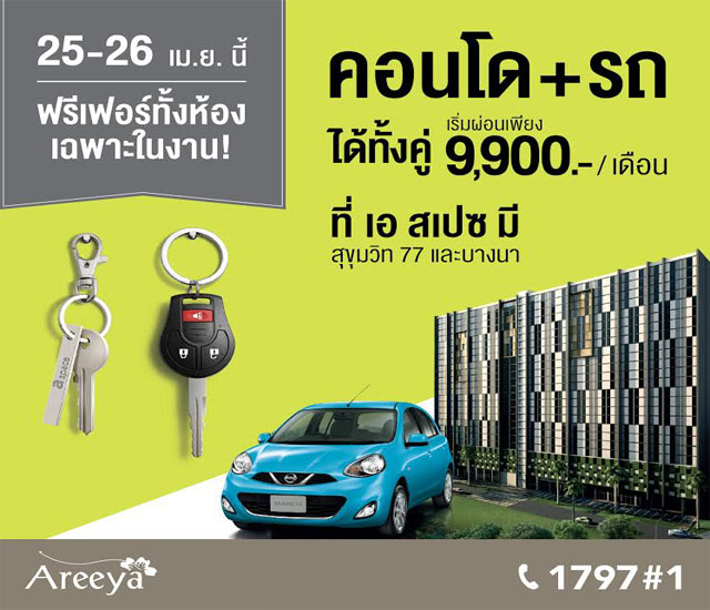 อารียา เตรียมจัดงาน a space instant life ให้คุณได้ทั้งคู่ คอนโด+รถ เริ่มผ่อนเพียง 9,900.-/เดือน
