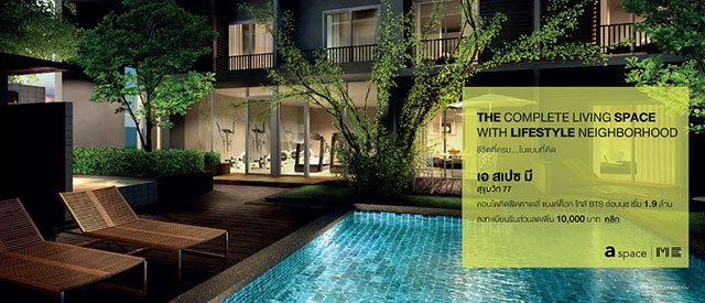 เอ สเปซ มี สุขุมวิท 77 (a space Me Sukhumvit 77) ใกล้แหล่งรวมไลฟ์สไตล์ พิคคาเดลี่ แบงค์ค็อก และรถไฟฟ้าสถานีอ่อนนุช คอนโดมิเนียม พร้อมสระว่ายน้ำขนาดใหญ่ 2 สระ ที่เชื่อมต่อกับฟิตเนสโซน สะดวกสบายกับระบบจอดรถอัตโนมัติ