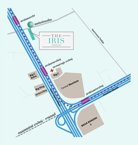 แผนที่โครงการ ดิ ไอริส บางใหญ่ โปรโมชั่นดีๆ แบบนี้ได้ที่สำนักงานขายโครงการ ตั้งแต่เวลา 9.00 - 18.00 น. ตลอดเดือนพฤษภาคมนี้ งานนี้ถ้าพลาดแล้วจะเสียดาย