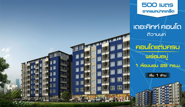 คอนโดมิเนียมรายล้อมความสุขรอบด้าน ด้วยห้างสรรพสินค้าและแหล่งพักผ่อนที่สำคัญ รองรับการเดินทางแห่งอนาคต เพียง 1 นาทีจากรถไฟฟ้าสายชมพู สถานีปากเกร็ด เริ่ม 1 ล้านบาท