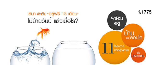 บริษัท เสนาดีเวลลอปเม้นท์ จำกัด (มหาชน) จัดเต็ม "อยู่ฟรี 15 เดือน" พบโครงการคุณภาพทั้งคอนโด บ้านเดี่ยว ทาวน์โฮม พร้อมอยู่ เริ่ม 850,000 บาท