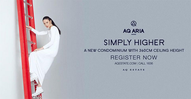บมจ.เอคิว เอสเตท (AQ) เตรียมเปิดคอนโหม่ "AQ ARIA ASOKE (เอคิว อาเรีย อโศก)" บนสุดยอดทำเลย่านอโศกใกล้ MRT สถานีพระราม 9 และแอร์พอร์ตลิงก์ สถานีมักกะสัน กับ 'Simply Higher' คอนโดเพดานสูง 360 เซนติเมตรทุกห้อง และได้พื้นที่ใช้สอยที่มากกว่า ให้บรรยากาศโปร่ง โล่ง สบาย ตกแต่งครบ ตอบโจทย์ผู้บริโภคยุคใหม่ได้อย่างลงตัว เริ่ม 3.98 ล้านบาท พร้อมเปิดห้องตัวอย่างให้สัมผัสความพิเศษ 15 มิ.ย. 58 นี้ และเตรียมพบกันได้ที่งาน Pre-Opening วันที่ 27 มิ.ย.นี้ ฟรี! เครื่องเสียง BEOPLAY A2 จาก Bang & Olufsen เมื่อจองภายในงานเท่านั้น