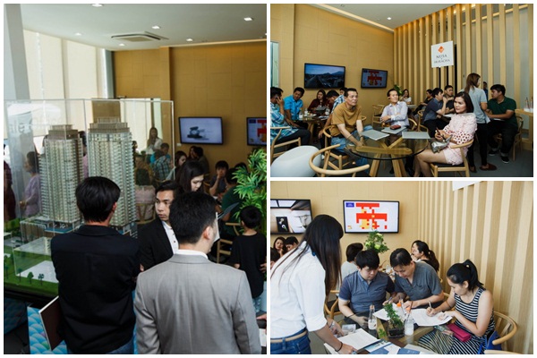 เจ้าหน้าที่ให้ข้อมูลลูกค้าที่เข้าร่วมงาน ณ สำนักงานขาย โครงการ "ณุศา ศรีราชา" พร้อมจองห้องชุด