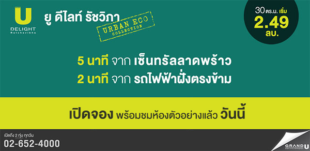 "ยู ดีไลท์ รัชวิภา" คอนโดใหม่ ริมถนนวิภาวดี เปิดจองพร้อมชมห้องตัวอย่างแล้ววันนี้ เริ่ม 2.49 ล้านบาท