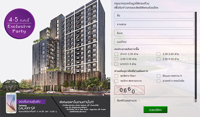 "Exclusive Party" รับโชค 3 ต่อ โชคชั้นที่ 1 จองเท่าไหร่รับคืน 10 เท่า ก่อนลุ้นโชคชั้นที่ 2 จองในงานลุ้นรับ Sumsung Galaxy S6 และรับเพิ่มโชคชั้นที่ 3 ลงทะเบียนออนไลน์รับฟรีบัตร Starbuck พร้อมกิจกรรมดีๆ อีกมากมาย รวมมูลค่าของรางวัลและส่วนลดทั้งสิ้นสูงสุด 400,000 บาท สำหรับผู้ที่มองหาที่อยู่อาศัยบนทำเลคุณภาพเยี่ยม สามารถจองและรับสิทธิพิเศษได้ภายในงานวันที่ 4-5 ก.ค. 58 นี้