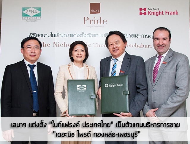 เสนาฯ แต่งตั้ง "ไนท์แฟรงค์ ประเทศไทย" เป็นตัวแทนบริหารการขาย "เดอะนิช ไพรด์ ทองหล่อ-เพชรบุรี"