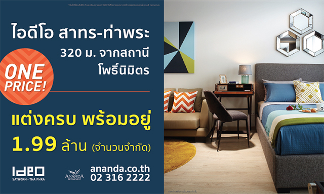 พบกับโปรฯ ONE PRICE! ที่ ไอดีโอ สาทร-ท่าพระ เริ่ม 1.99 ล้านบาท (จำนวนจำกัด)