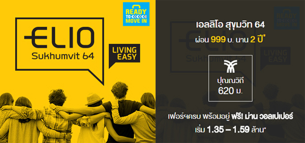 3. เอลลิโอ สุขุมวิท 64 (Elio Sukhumvit 64) - แต่งครบพร้อมอยู่ / อยู่ฟรี 730 วัน / ฟรีทุกค่าใช้จ่าย ฟรี Samsung Galaxy S6 Edge 32GB