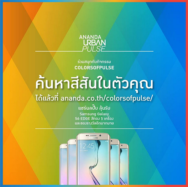 ananda.co.th/colorsofpulse รับข้อเสนอสุดพิเศษอีกมากมาย ได้ที่งาน ANANDA URBAN PULSE วันที่ 12-16 ส.ค. 58 นี้ ณ แฟชั่น ฮอลล์ ชั้น 1 ศูนย์การค้าสยามพารากอน