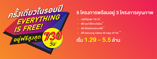 คอนโดมิเนียมพร้อมอยู่ กับโปรโมชั่นพิเศษสุด!! "ครั้งเดียวในรอบปี Everything is Free" อยู่ฟรีสูงสุด 730 วัน / ฟรีค่าใช้จ่ายวันโอน / ฟรีเฟอร์นิเจอร์ครบเซ็ต / ฟรี Samsung Galaxy S6 Edge 32GB ในราคาพิเศษ เริ่มต้นเพียง 1.29 - 5.5 ล้านบาท