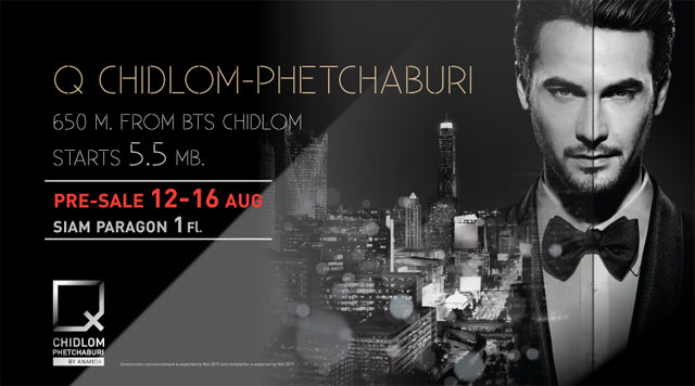 คิว ชิดลม เพชรบุรี (Q Chidlom-Phetchaburi) พร้อม Pre-Sale ในงาน "ANANDA URBAN PLUSE" วันที่ 12-16 ส.ค. 58 นี้ บริเวณชั้น 1 ศูนย์การค้าสยามพารากอน ราคาเริ่มต้น 5.5 ล้านบาท พร้อมข้อเสนอสุดพิเศษภายในงาน