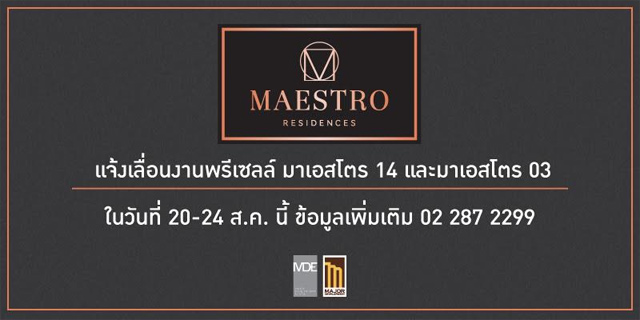 เมเจอร์ฯ แจ้งเลื่อนงานพรีเซลล์ มาเอสโตร 14 และมาเอสโตร 03 ในวันที่ 20-24 ส.ค. นี้