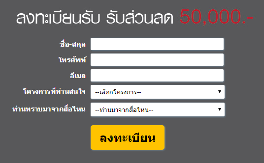 ท่านที่สนใจสามารถลงทะเบียนเพื่อรับส่วนลดเพิ่ม 50,000 บาทได้ที่ลิงก์ด้านล่างนี้สอบถามข้อมูลเพิ่มเติมได้ที่ 02-468-9000 เว็บไซต์ www.cmc.co.th และ Facebook : www.facebook.com/cmc.co.thข่าว-โปรโมชั่นล่าสุดอื่นๆ