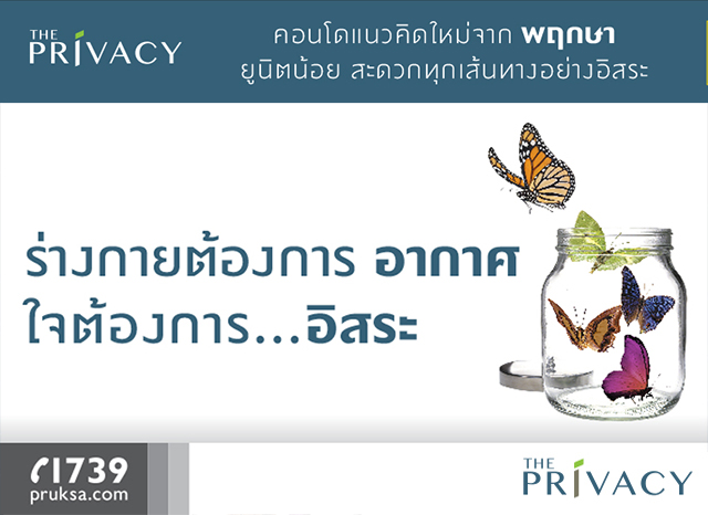 บริษัท พฤกษา เรียลเอสเตท จำกัด (มหาชน) เตรียมเปิดตัวคอนโดโครงการใหม่ล่าสุด กับ "เดอะ ไพรเวซี่ ลาดพร้าว-เสนา" เป็นคอนโดแบบ Low Rise สูง 8 ชั้น ให้ความเป็นส่วนตัว เพราะมีจำนวนยูนิตที่น้อย โดยตัวโครงการตั้งอยู่ริมถนนลาดพร้าว-วังหิน อยู่บริเวณปากซอย 43 ที่มาพร้อมกับแนวคิด "ร่างกายต้องการอากาศ ใจต้องการ...อิสระ" พร้อมเปิดชมห้องตัวอย่าง ที่ กรีนพลาซ่า วังหิน 77 วันที่ 1 ตค. 58 นี้ ราคาเริ่มต้น 1.09 ล้านบาท