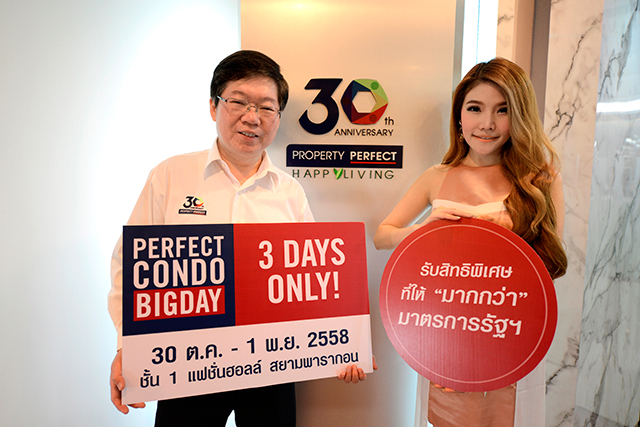 พร็อพเพอร์ตี้ เพอร์เฟค ตอบรับมาตรการรัฐฯ จัดงานใหญ่แห่งปี ยกขบวนคอนโดมิเนียม รวม 13 โครงการ ให้เลือกเป็นเจ้าของได้ด้วยราคาต่ำสุด บวกสิทธิพิเศษที่ให้มากกว่ามาตรการรัฐฯ ในงาน "PERFECT CONDO BIGDAY" 30 ต.ค. - 1 พ.ย.นี้ ที่ สยามพารากอน ชั้น 1