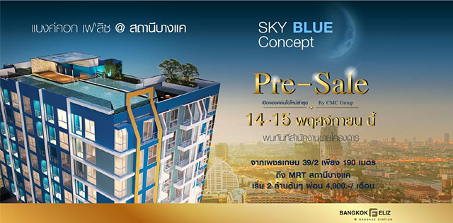CMC Group เตรียมจัดงาน Pre-Sale คอนโดมิเนียมโครงการน้องใหม่ "แบงค์คอก เฟ'ลิซ @ สถานีบางแค" ภายใต้ "Sky Blue Concept" Connect Your Life เชื่อมต่อชีวิตได้อย่าง ลงตัว...เหนือจินตนาการ ใกล้ MRT สถานีบางแค เพียง 190 เมตร ในวันที่ 14-15 พ.ย.58 พบกันที่สำนักงานขายโครงการ