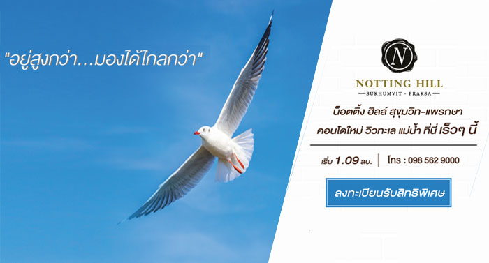 เตรียมพบกับคอนโดทำเลแห่งอนาคต "น็อตติ้ง ฮิลล์ สุขุมวิท-แพรกษา" วิวทะเล แม่น้ำ เริ่ม 1.09 ล้านบาท