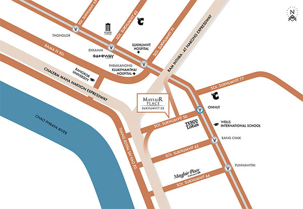 เมย์แฟร์ เพลส สุขุมวิท 50 (Mayfair Place Sukhumvit 50) ตั้งอยู่บนถนนสุขุมวิท ซอยสุขุมวิท 50 แขวงพระโขนง เขตคลองเตย กรุงเทพฯ