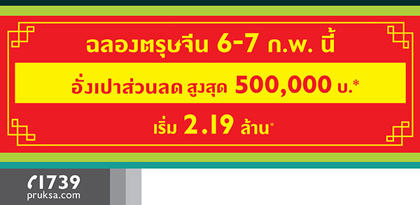 สอบถามรายละเอียดเพิ่มเติม โทร. 1739 หรือเว็บไซต์ www.pruksa.com