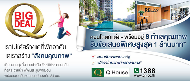 ควอลิตี้เฮ้าส์ ส่ง 8 คอนโดฯทำเลคุณภาพ ตกแต่ง-พร้อมอยู่ทันที จัดเต็มโปรฯ BIG DEAL ลดสูงสุด 1 ล้าน
