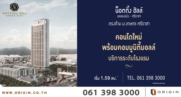 ออริจิ้นฯ เดินหน้าเปิดตัวโครงการใหม่ Notting Hill แหลมฉบัง-ศรีราชา เริ่ม 1.59 ล้านบาท