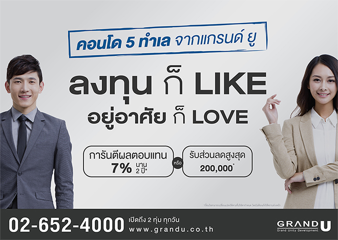 "แกรนด์ ยู" ส่งแคมเปญ "ลงทุนก็ Like อยู่อาศัยก็ Love" ชูความคุ้มค่าส่งท้ายมาตรการรัฐ