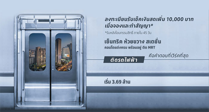 เซ็นทริค ห้วยขวาง สเตชั่น (Centric Huai Khwang Station) ผ่อนให้ฟรี 2 ปีเต็ม* พิเศษสุดๆ แค่ลงทะเบียนรับเช็คเงินสดเพิ่ม 10,000 บาท เมื่อจองและทำสัญญา*