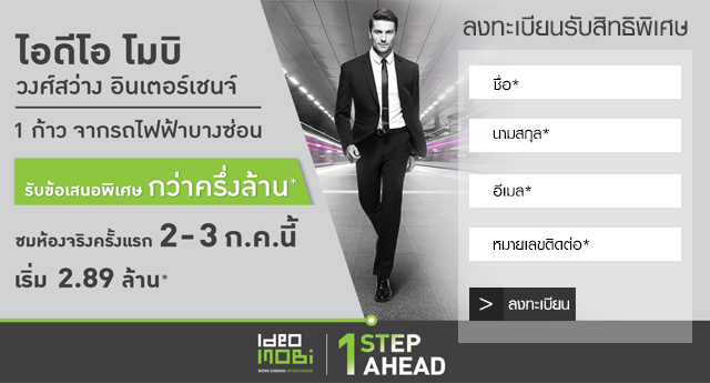 "ครึ่งล้าน" พร้อมฟรีเงินดาวน์และเงินจอง + ทำสัญญา เพียง 50,000 บาท และผ่อน 0% นาน 10 เดือน สิทธิพิเศษสำหรับลูกค้าที่เข้าร่วมงานเปิดตัวโครงการครั้งแรก ในวันที่ 2 - 3 กรกฎาคม 2559 นี้ สามารถเข้าเยี่ยมชมโครงการได้ที่ Sales Gallery โครงการไอดีโอ โมบิ วงศ์สว่าง อินเตอร์เชนจ์