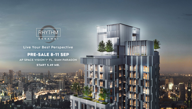 บริษัท เอพี (ไทยแลนด์) จำกัด (มหาชน) เปิดโครงการใหม่ "ริธึ่ม เอกมัย (Rhythm Ekkamai)" คอนโดไฮคลาสเทียบเท่าโรงแรมหรูระดับโลก มีห้องพักอาศัย 326 ยูนิต บนเนื้อที่ 1 ไร่ 3 งาน 44.3 ตร.ม. ราคาเริ่มต้น 5.49 ล้านบาท เปิดจอง 8 - 11 กันยายน 2559 นี้ ที่งาน AP SPACE VISION ชั้น 1 สยามพารากอน