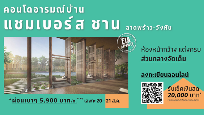 บริษัท เอสซี แอสเสท คอร์ปอเรชั่น จำกัด (มหาชน) จัดแคมเปญ "CHAMBERS CHAAN" (แชมเบอร์ส ชาน) คอนโดอารมณ์บ้าน ส่วนกลางจัดเต็ม ผ่อนเบาๆ เพียง 5,900 บาท/เดือน* เฉพาะวันที่ 20 - 21 ส.ค. 59 นี้ สำหรับลูกค้าที่จองภายในวันงาน พบห้องราคาพิเศษเริ่ม 2 ล้านต้น พร้อมฟรีเฟอร์นิเจอร์ตกเแต่งครบ และพิเศษสำหรับลูกค้าทั่วไปที่