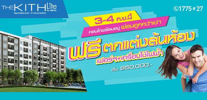 "เดอะคิทท์ ไลท์ บางกะดี ติวานนท์ (The Kith Lite Bangkadi Tiwanon)" ติดถนนใหญ่ใกล้รังสิต-ปทุมธานี เดินทางสะดวกสบาย พร้อมสิ่งอำนวยความสะดวกรอบด้าน โดดเด่นกว่าสิ่งอำนวยความสะดวกครบครันพร้อมสวนสวย กว้าง บนที่ตั้งโครงการ ถนนติวานนท์ ตำบลบางกะดี อำเภอเมือง จังหวัดปทุมธานี (ใกล้สวนอุตสาหกรรมบางกะดี) บนเนื้อที่โครงการกว่า 4 ไร่ (ไม่รวมพื้นที่คลับเฮ้าส์) ตกแต่งครบ พร้อมอยู่ ในราคาเริ่มต้นเพียง 950,000 บาท เปิดจองวันที่ 3 - 4 ก.ย.นี้ พร้อมลงทะเบียนเพื่อรับสิทธิพิเศษก่อนใคร