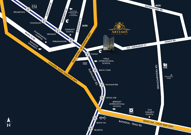Artemis Sukhumvit 77 (อาทีมิส สุขุมวิท 77) โดย ซีทีซีซี เอ็นจิเนียริ่ง จำกัด (CTCC) กลุ่มนักลงทุนจากจีน ตัวโครงการเป็นคอนโดสร้างเสร็จก่อนขาย แบบ High Rise สูง 30 ชั้น 673 ยูนิต ร้านค้า 3 ยูนิต อยู่ภายในซอยสุขุมวิท 77 (อ่อนนุช) ไม่ไกลจากรถไฟฟ้า BTS สถานีอ่อนนุช