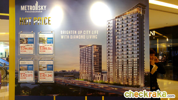 พริตตี้น่ารักๆ ประชาสัมพันธ์ให้ข้อมูลโครงการที่มาร่วมงานเป็นระยะ เมโทร สกาย วุฒากาศ (Metro Sky Wutthakat) ใกล้รถไฟฟ้า BTS สถานีวุฒากาศ เพียง 400 เมตร เดินทางสู่ศูนย์กลางธุรกิจได้อย่างรวดเร็วเพียงไม่กี่สถานีถึงสีลม สาทร เป็นอาคารพักอาศัยสูง 32 ชั้น จำนวน 1 อาคาร และอาคารจอดรถสูง 5 ชั้น จำนวน 1 อาคาร จำนวนยูนิตพักอาศัย 623 ยูนิต และห้องชุดเพื่อการพาณิชย์ 1 ยูนิต ดีไซน์ทันสมัยด้วย Lobby เพดานสูง มี ราคาเริ่ม 2 ล้านต้น