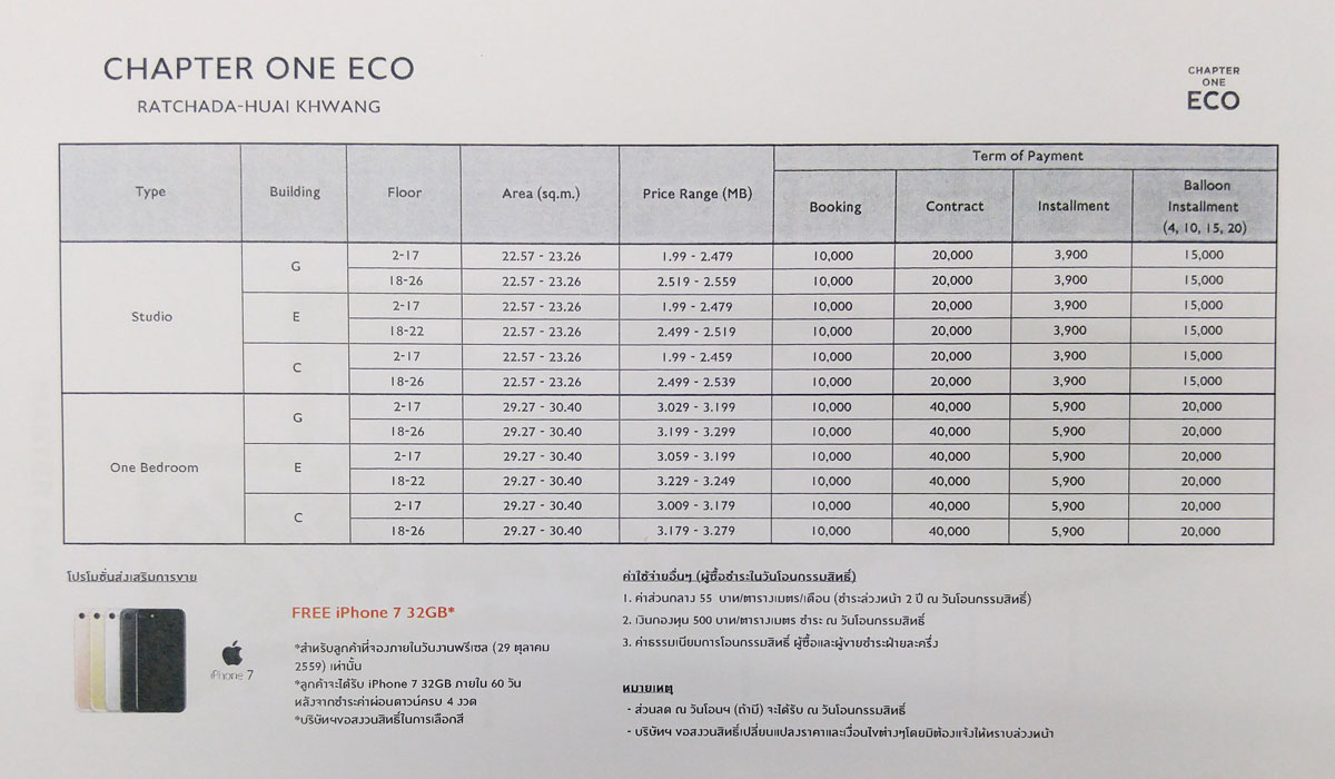 โครงการ Chapter One ECO รัชดา-ห้วยขวาง ขายแบบ Fully Furnished แต่งครบ ราคาเริ่มต้น 1.99 ล้านบาท เปิด Presale วันที่ 29 ต.ค. นี้ ที่สำนักงานขายโครงการ Chapter One ECO รัชดา-ห้วยขวาง สำหรับลูกค้าที่จองวันงานรับ iPhone 7 และลุ้นแพคเกจท่องเที่ยวประเทศนอร์เวย์ 1 รางวัล จำนวน 2 ที่นั่ง