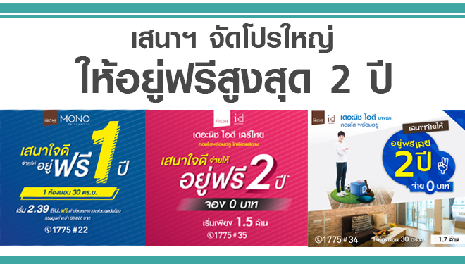 บริษัท เสนาดีเวลลอปเม้นท์ จำกัด (มหาชน) จัดโปรโมชั่นใหญ่ อยู่ฟรีสูงสุด 2 ปี ฟรีค่าใช้จ่ายวันโอน กับ 3 โครงการใหม่ เดอะนิช โมโน รัชวิภา, เดอะนิช ไอดี เสรีไทย และเดอะนิช ไอดี บางแค