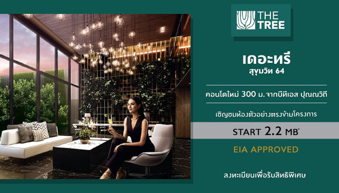 2 ธ.ค. 59 2,019พฤกษา เปิดคอนโดใหม่ "The Tree สุขุมวิท 64" คอนโด Low Rise ใกล้ BTS ปุณณวิถี 310 เมตร