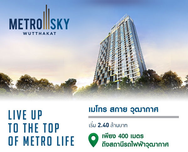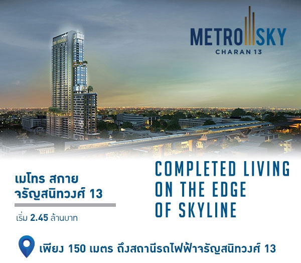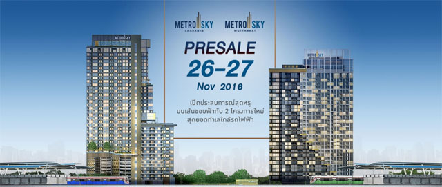 PRESALE "เมโทร สกาย จรัญสนิทวงศ์ 13" และ "เมโทร สกาย วุฒากาศ" 26-27 พ.ย. นี้ เริ่ม 2.4 ล้าน