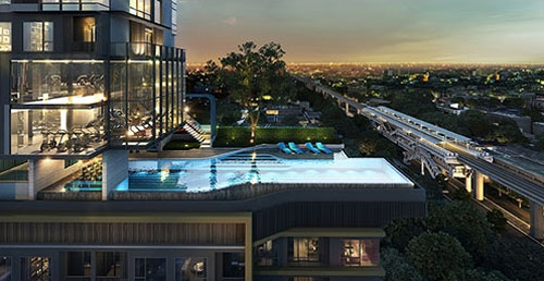 อีกขั้นของชีวิตเมืองด้วยมุมมองที่เหนือกว่า หนึ่งเดียวบนวุฒากาศ กับภูมิทัศน์เขียวขจีที่รายล้อมตัวอาคารในทุกมิติทอดสายตาใน Lobby เดพานสูง และ Front Pool ขนาดใหญ่ ออกแบบทุกจุด เปิดรับวิวขอบฟ้า พร้อม Sky Facilities บนยอดตึก ให้คุณชื่นชมทัศนียภาพกรุงเทพฯ ได้สุดสายตา ราคาเริ่มต้น 2.40 ล้านบาท สำหรับห้องแบบสตูดิโอ ขนาดประมาณ 24 ตร.ม.
